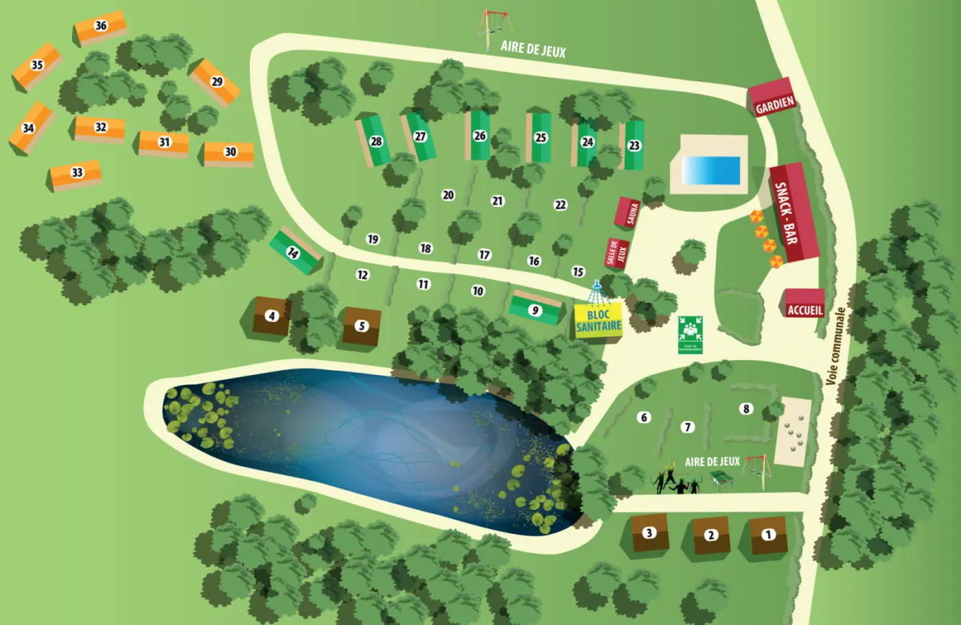 Chacun de nos logements est doté d’une terrasse aménagée avec un salon de jardin, vous permettant de profiter pleinement du grand air, ainsi que d’une parcelle spacieuse ombragée ou partiellement ombragée.